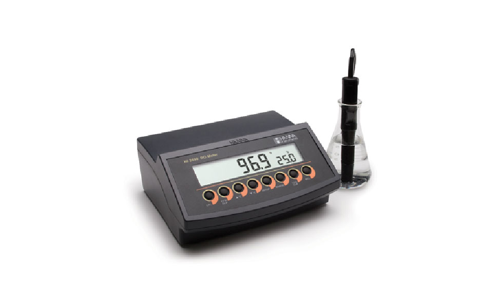 El HI2400 es un medidor de mesa durable y preciso que mide el oxígeno disuelto en mg/L (ppm) o en porcentaje de saturación.