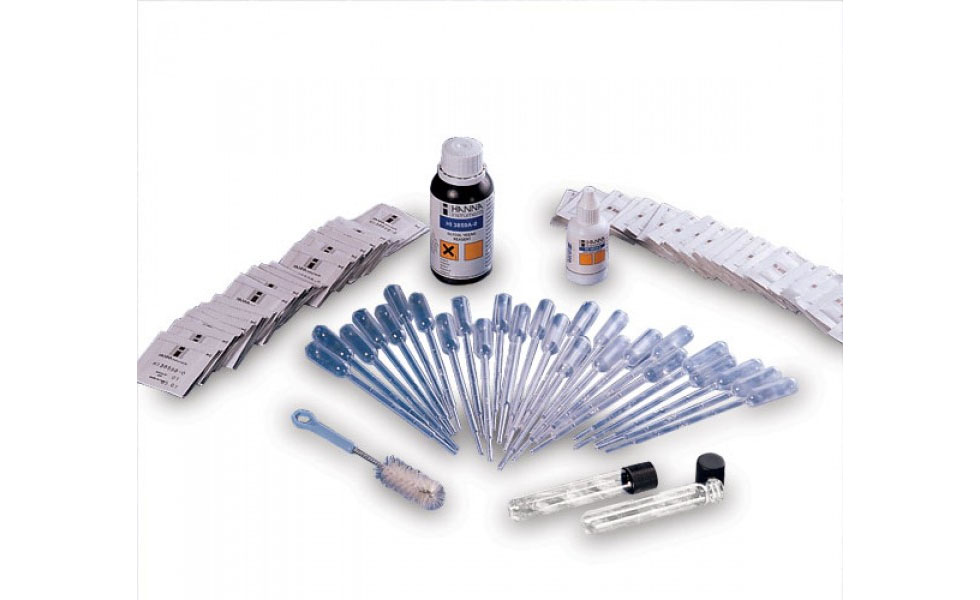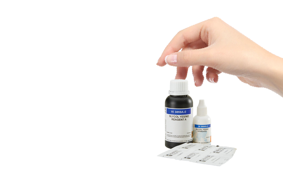 El HI3859 es un kit químico de pruebas que utiliza un método visual para determinar la presencia de glicol. Se suministra completo con todos los reactivos y accesorios necesarios para realizar 25 pruebas.