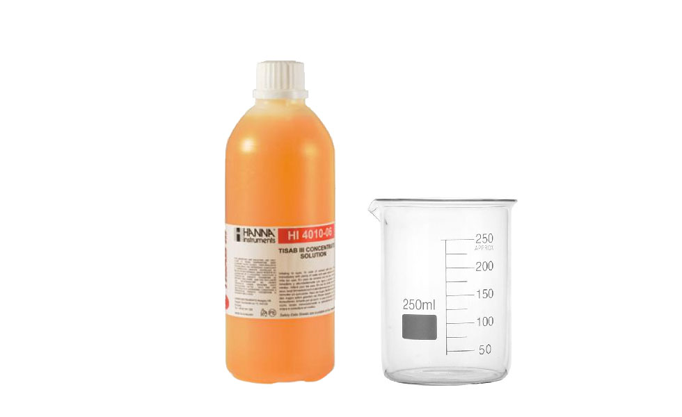 HI4010-06 es una solución concentrada TISAB III para usarse con electrodos de ion selectivo de fluoruro que viene en un frasco de 500 mL. Las soluciones estándar para ISE tienen el número de lote y la fecha de caducidad claramente marcados en la etiqueta.