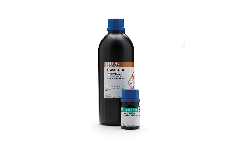 La HI4015-00 es una solución amortiguadora para uso con electrodos de ion selectivo de plata/sulfuro. Incluye dos componentes: un frasco de 500 mL de reactivo A y un frasco de 18 g de reactivo B.