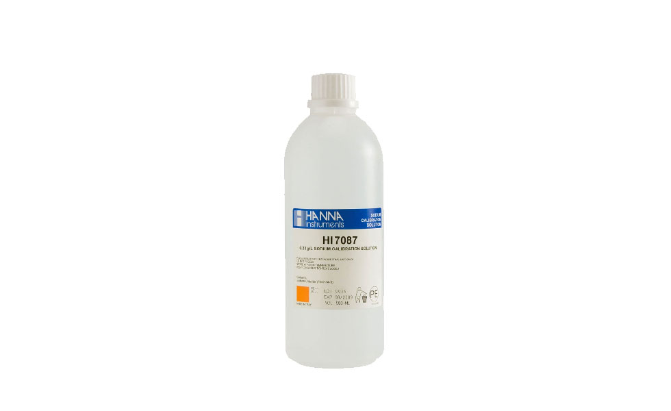 La HI7087L es una solución estándar de sodio (Na+) de 0.23 g/L para ISE de calidad superior, que viene en frasco de 500 mL. Las soluciones estándar para ISE tienen el número de lote y la fecha de caducidad claramente marcados en la etiqueta.