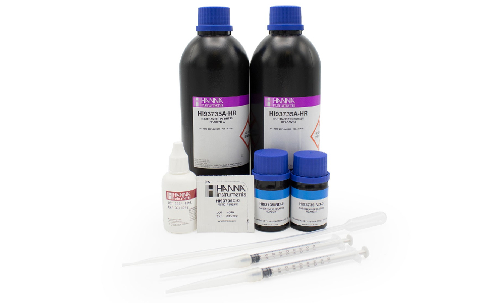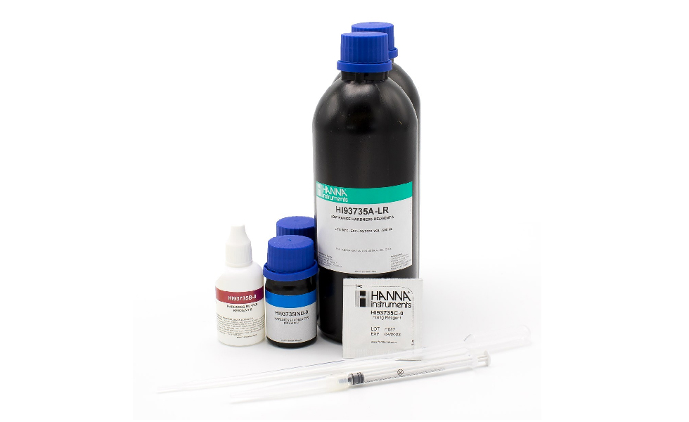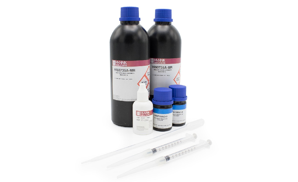 Los HI93735-01 son reactivos para la determinación de dureza total. Contiene suficientes reactivos para 100 pruebas que se utilizan con el fotómetro portátil de dureza total.