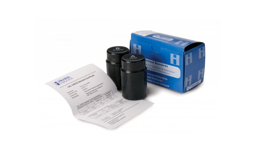 Los estándares CAL Check™ HI96735-11 de dureza total proporcionan una solución simple para calibrar y validar el fotómetro portátil HI96735 que ofrece tres intervalos de medición. Los estándares CAL Check™ HI96735-11 se pueden usar para intervalo bajo (0 a 250 mg/L de CaCO3), intervalo medio (200 a 500 mg/L de CaCO3) e intervalo alto (400 a 750 mg/L de CaCO3) de dureza total. Este conjunto de estándares de alta calidad se fabrica en nuestras instalaciones de última tecnología y viene con un certificado de análisis.