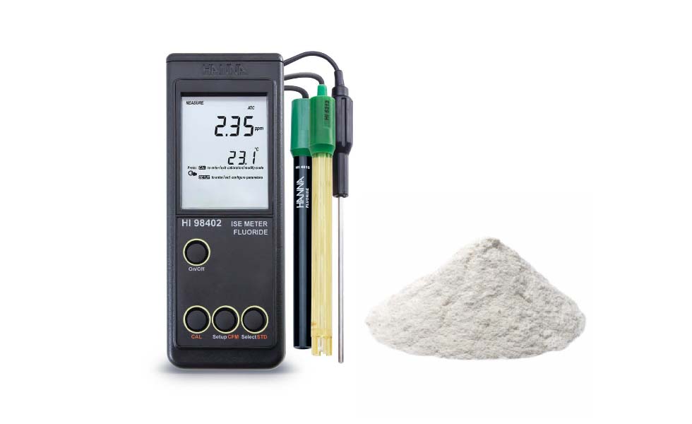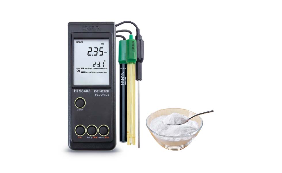 El HI98402 es un medidor para fluoruro que es robusto, resistente al agua y portátil. Este medidor ofrece muchas características, incluyendo calibración automática, instrucciones en pantalla y compensación automática de temperatura. El HI98402 requiere de un electrodo de media celda de fluoruro con cuerpo epóxico HI4010 y un electrodo de referencia HI5313 construido con material PEI.