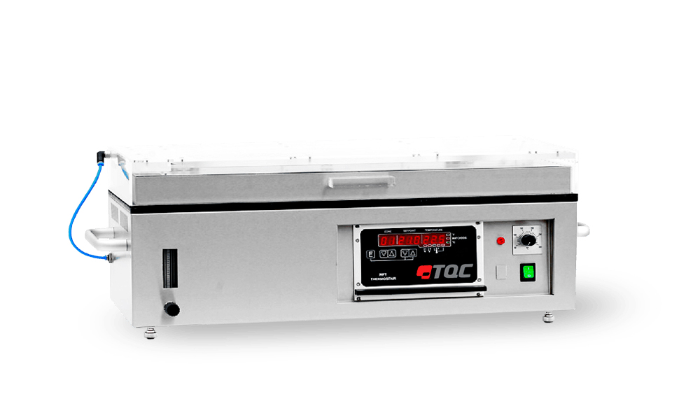 Placa de gradiente de temperatura para la determinación de película mínima de formación de prueba de temperatura. La temperatura mínima de formación de película es la temperatura más baja a la que se unirán de manera uniforme una emulsión, látex o adhesivo cuando se aplica sobre un sustrato como una película delgada.
